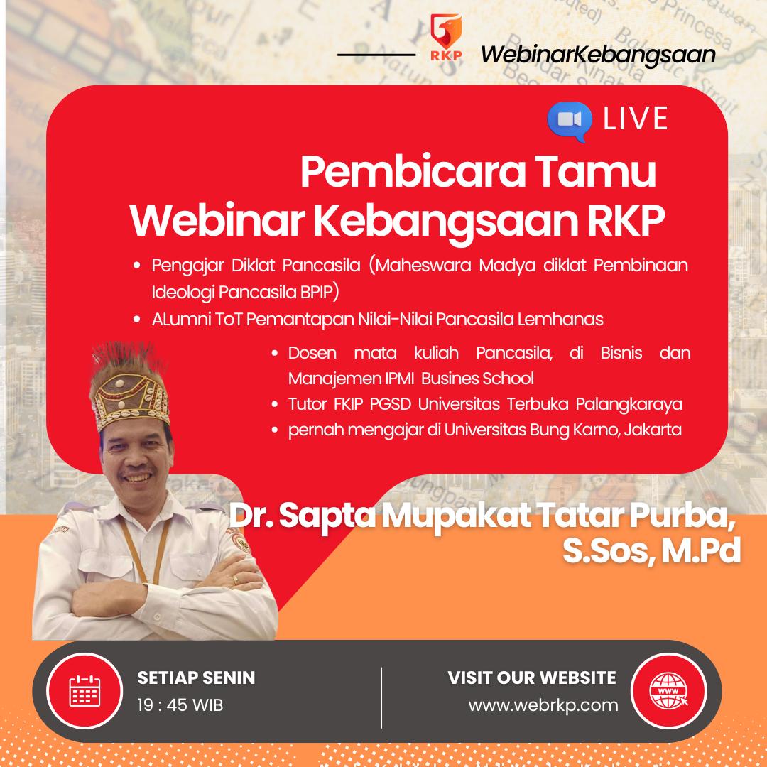 Setiap kegiatan Webinar Kebangsaan yang diselenggarakan oleh Rumah Kebangsaan Pancasila selalu menghadirkan narasumber luar biasa dari tokoh, akademisi, pemimpin muda, hingga praktisi berpengalaman dalam menanamkan nilai-nilai Pancasila di kehidupan nyata.